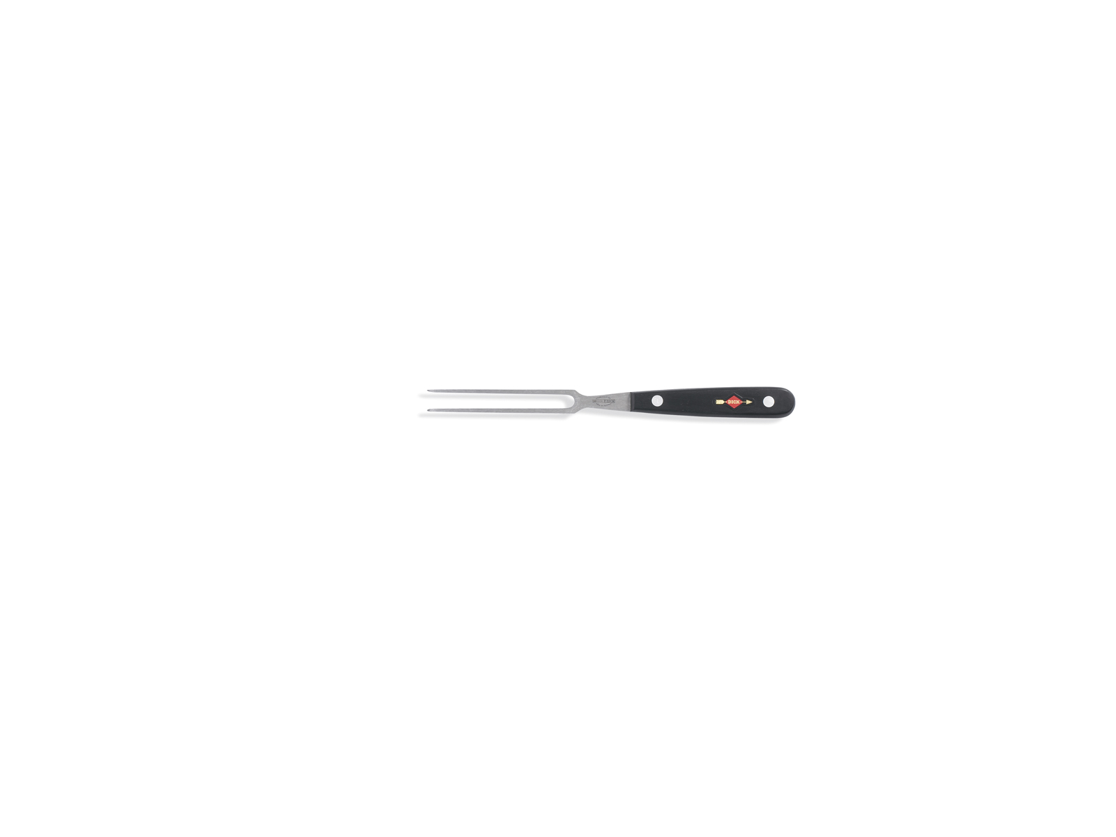 F. Dick er kendt for deres gennemførte tyske kvalitet, og denne pålægsgaffel lever op til dette ry. Den fuldsmedede konstruktion i hærdet rustfrit stål giver gaflen en ensartet struktur, som sikrer både styrke og præcision i serveringen. Med en vægt på kun 70 gram ligger den godt i hånden uden at være tung at arbejde med. Det sorte specialkunststof-skæfte er designet til at give et sikkert greb, selv ved længere tids brug.