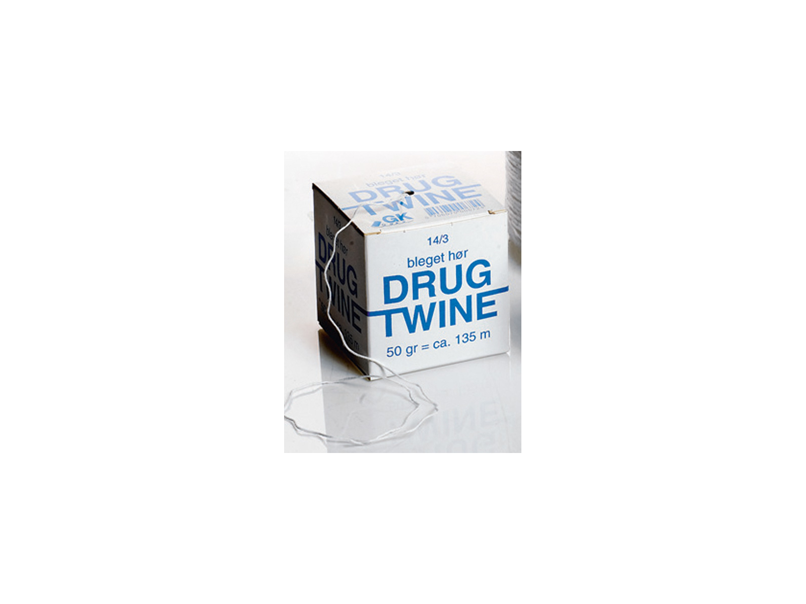 Drug Twine rullepølsegarn kommer i en praktisk æske med 50 gram garn, hvilket giver en samlet længde på 135 meter. Garnet er godkendt til fødevarebrug og kan anvendes direkte i kontakt med kød og andre fødevarer. Den kompakte emballage gør det nemt at opbevare og transportere, samtidig med at garnet holdes beskyttet og rent indtil brug.
