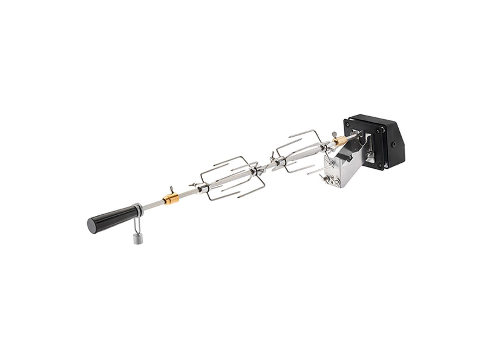 Denne rotisserie til Rösle Videro G2 og G3 grill løfter dine grillresultater til et nyt niveau. Med en stabil elmotor, der roterer spiddet cirka 3 gange i minuttet, og et robust spyd i 18/10 rustfrit stål, kan du tilberede alt fra hel kylling og spidsteg til gyros med enestående resultater. Rotisseriet klarer nemt op til 10 kg kød uden at bøje eller vakle.