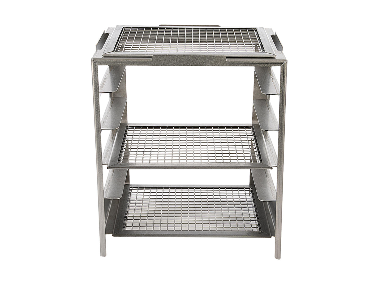 - Rustfrie stålhylder: Udstyret med to hylder i rustfrit stål, der tilbyder ekstra opbevaringsplads og arbejdsområder til forberedelse af ingredienser og tilbehør.