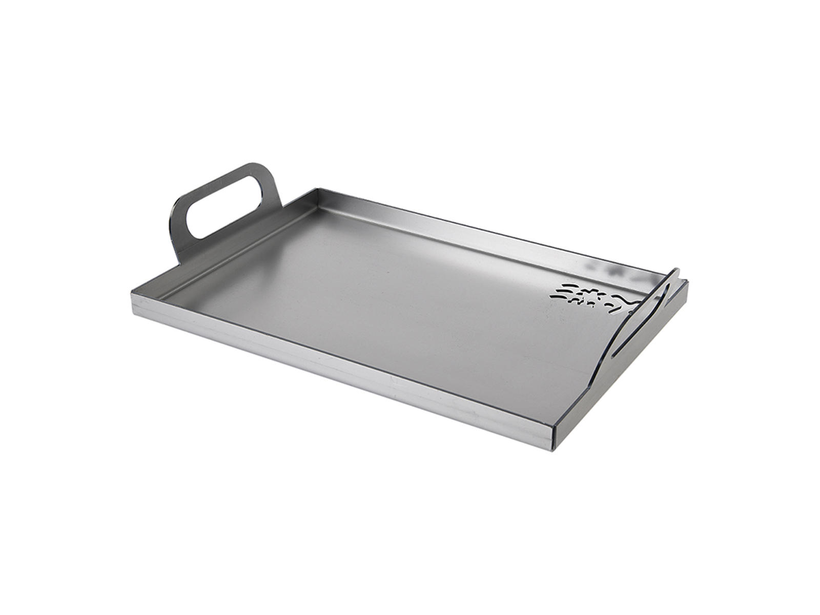 Stegepladen er udstyret med praktiske håndtag, der gør det nemt at flytte og håndtere pladen, selv når den er varm. Dette giver dig fuld kontrol over madlavningen og gør det nemt at tilpasse tilberedningen efter behov.