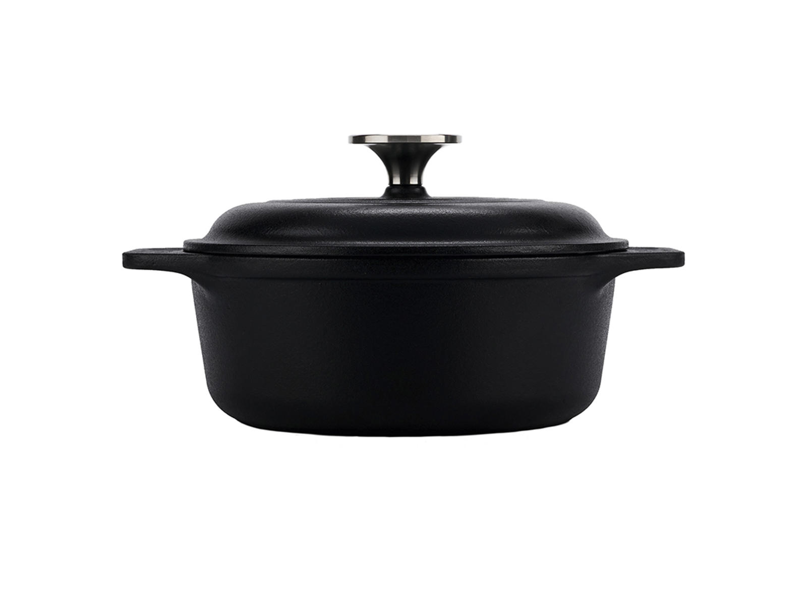 Denne 1,9 liters Dutch oven støbejernsgryde kombinerer klassisk madlavningsteknologi med moderne funktionalitet. Fremstillet af massivt støbejern, der fordeler og holder på varmen exceptionelt godt, giver gryden dig mulighed for at tilberede mad med jævn varme og minimalt temperaturtab. Ideel til langtidssimrende retter, hvor smag og mørhed skal udvikle sig over tid.