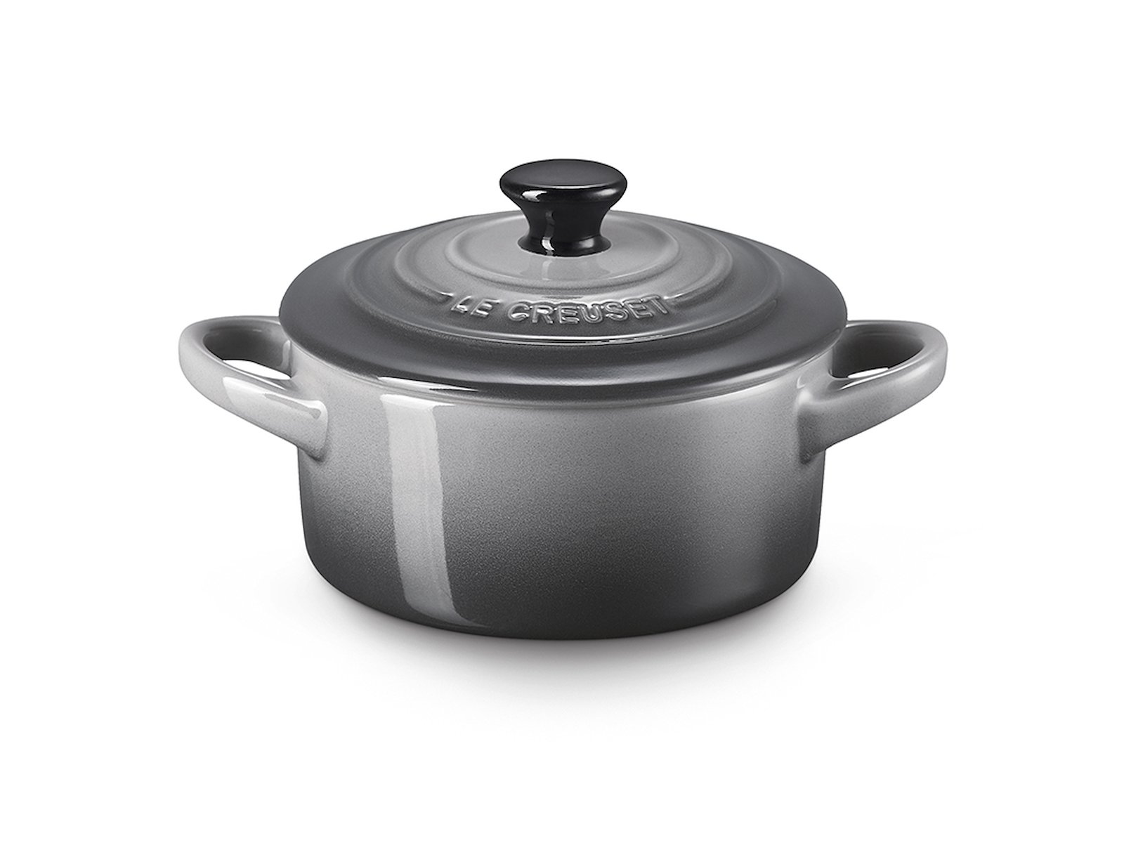 Le Creusets minigryde i stentøj med en diameter på 10 cm og volumen på 0,25 liter kombinerer funktionalitet med tidløst design. Fremstillet af holdbart, glaseret stentøj i den elegante flintgrå farve, der holder en jævn temperatur og er modstandsdygtig over for ridser. Ideel til servering af portionsanretninger eller mindre tilbehør på en indbydende måde.