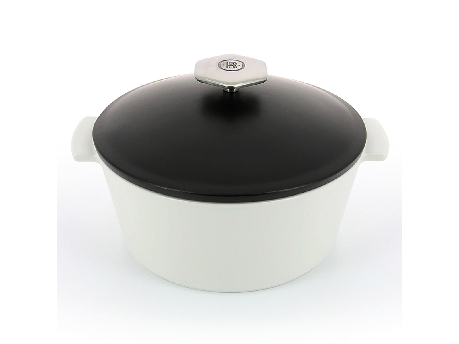 Denne sorte keramiske gryde på 22 cm i diameter er en del af Revolution 2-serien fra Revol Porcelæn. Den er fremstillet af omhyggeligt udvalgte mineralmaterialer, brændt ved meget høje temperaturer og designet til at fungere på induktionskomfurer med en kapacitet på 2400 ml.