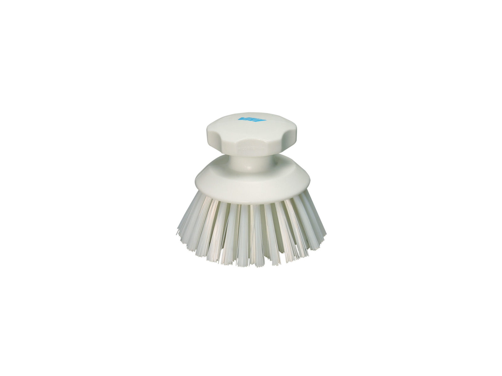 Denne Vikan håndbørste i hvid er designet til grundig rengøring med sine stive børstehår og ergonomiske greb. Med sine kompakte mål på 11x11x11 cm er børsten fremstillet af holdbare materialer som polyester, PP og rustfrit stål, hvilket sikrer lang levetid og god skrubbeeffekt. Ideel til rengøring af gryder, spande og mindre beholdere, hvor der kræves præcision og effektiv fjernelse af fastgroet snavs.