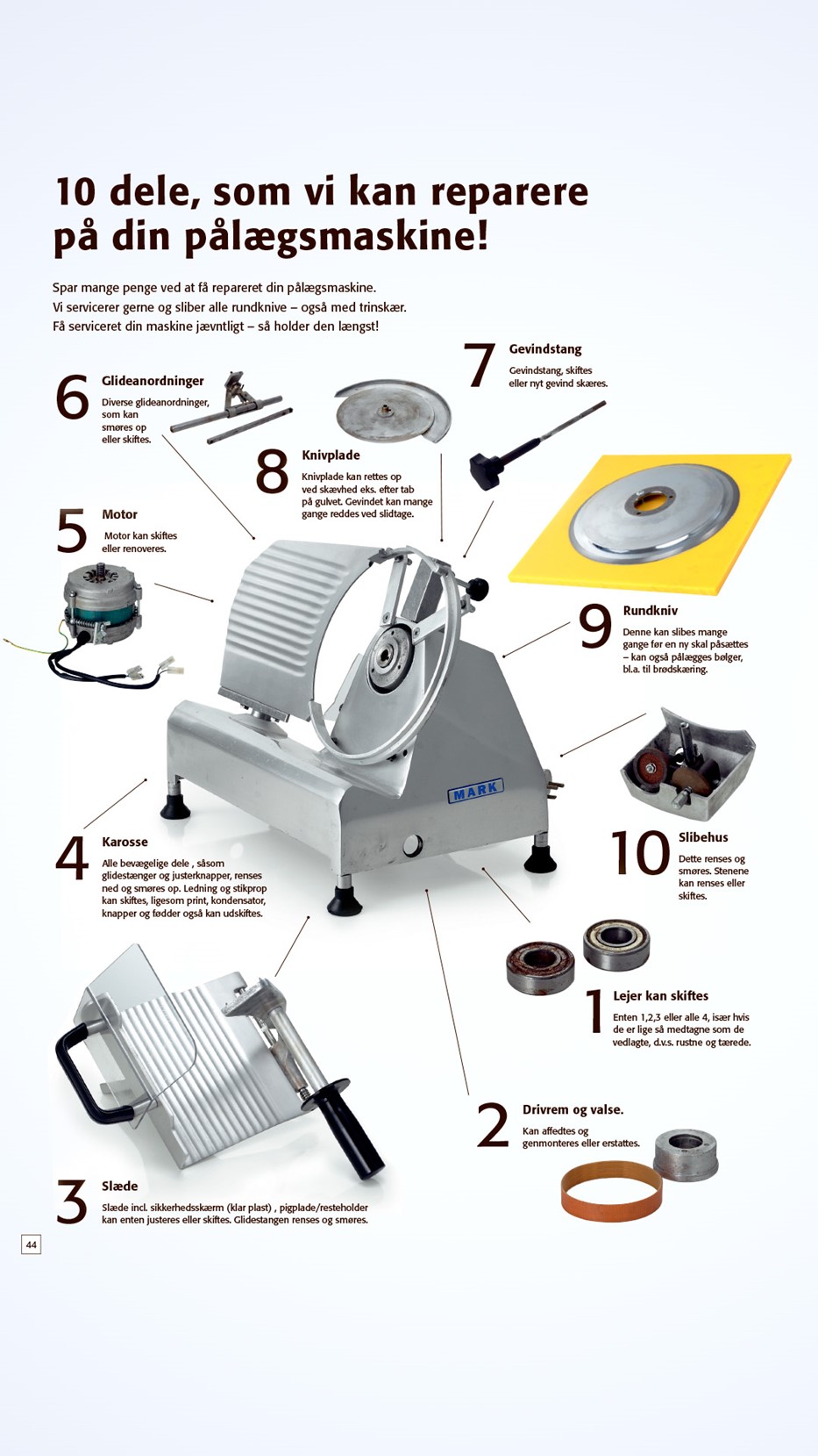 Når din pålægsmaskine bliver flittigt brugt, sker det desværre en gang imellem at den trænger til en kærlig hånd - den har vi, og her viser vi dig 10 dele vi kan reparere for dig.