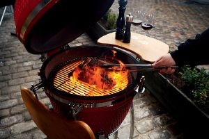 "Vi kender den så godt. Den har fire lufthuller, så man kan umuligt begå fejl med dem. Selvom den vejer 65 kilo, så er der hjul under, så en af os kan håndtere den alene. Desuden er det den bedste grill til at lave helstegt pattegris på. Vi kan ikke undvære den."