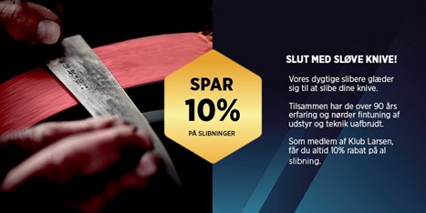 *Klub Larsen rabatterne kan ikke kombineres med i forvejen nedsatte varer - Du får dog altid den billigeste pris! Rabatterne gælder ikke ”Larsen Pris” varer.