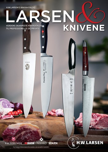 Vi har lavet et katalog om knive – og ikke bare ét katalog om knive - men kataloget med alverdens knive. Vi håber, at du vil nyde de mange flotte billeder, de skarpe tekster, de frække vinkler og de mange informationer og vores nørderier, som sætter fokus på begreber som damascering, holke, brøster, micarta, hårdhed, ståltypernes mange sjove betegnelser. Forhåbentlig giver kataloget dig præcist den information, som du har brug for.