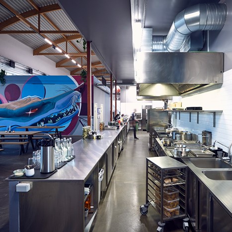 Vi var med fra første streg og det med stolthed. Vores projekttegninger har nemlig sikret, at der ikke er ofret en krone for meget på unødvendige rørføringer. Selve køkkenet i Broaden & Build er helt åbent, og du kan se ind i opvasken, som altid fremstår ren og pæn. Du kan med fordel (hvis du er lige så nørdet omkring maskiner som os) se alle maskinerne og nyde de mange gode produkter, der er her. Det kan være sig ovne og kølediske, som er af den bedste Zanussi kvalitet. Kvalitet og bæredygtighed er nøgleord for både os og Matt Orlando, så vi er glade for kunne lave et køkken, der holder. Og holder længe. Lægges hertil den gode service og betjening, som er ført videre fra Amass, kan det kun gå for langsomt med at lægge vejen forbi Broaden & Build.