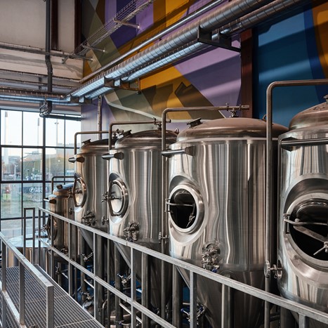 Broaden & Build er som sagt indrettet i en af de gamle haller på Refshaleøen, og restauranten er ikke ”bare” restaurant. Hvordan det? Jo, fordi i lokalet sidder du side om side med et stort bryggeri i flere etager. Graffitien, som er Matts særlige kendetegn, udsmykker de store flader med fantastiske farver, og giver stedet sin helt egen stil. Der er højt til loftet og maden er lavet, så den harmonerer med øllet, som ikke bare er klassiske pilsner-typer m.fl.