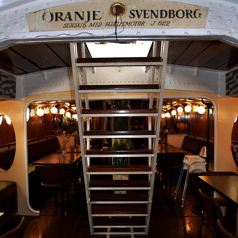 Atmosfæren er afslappet, og kærligheden til skibet er mærkbar i det autentiske interiør. Et besøg på Oranje er en oplevelse af både at rejse ud og komme trygt i havn, en blanding af noget nyt og anderledes og noget velkendt, komfortabelt.