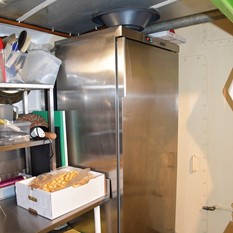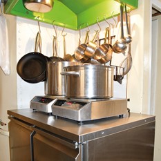 Når fokus er på mindre madspild, økologi og gode løsninger, skal køkkenet laves, så arbejdsgangen er ”flydende”, især fordi pladsen – som det ses – er ekstrem trang.