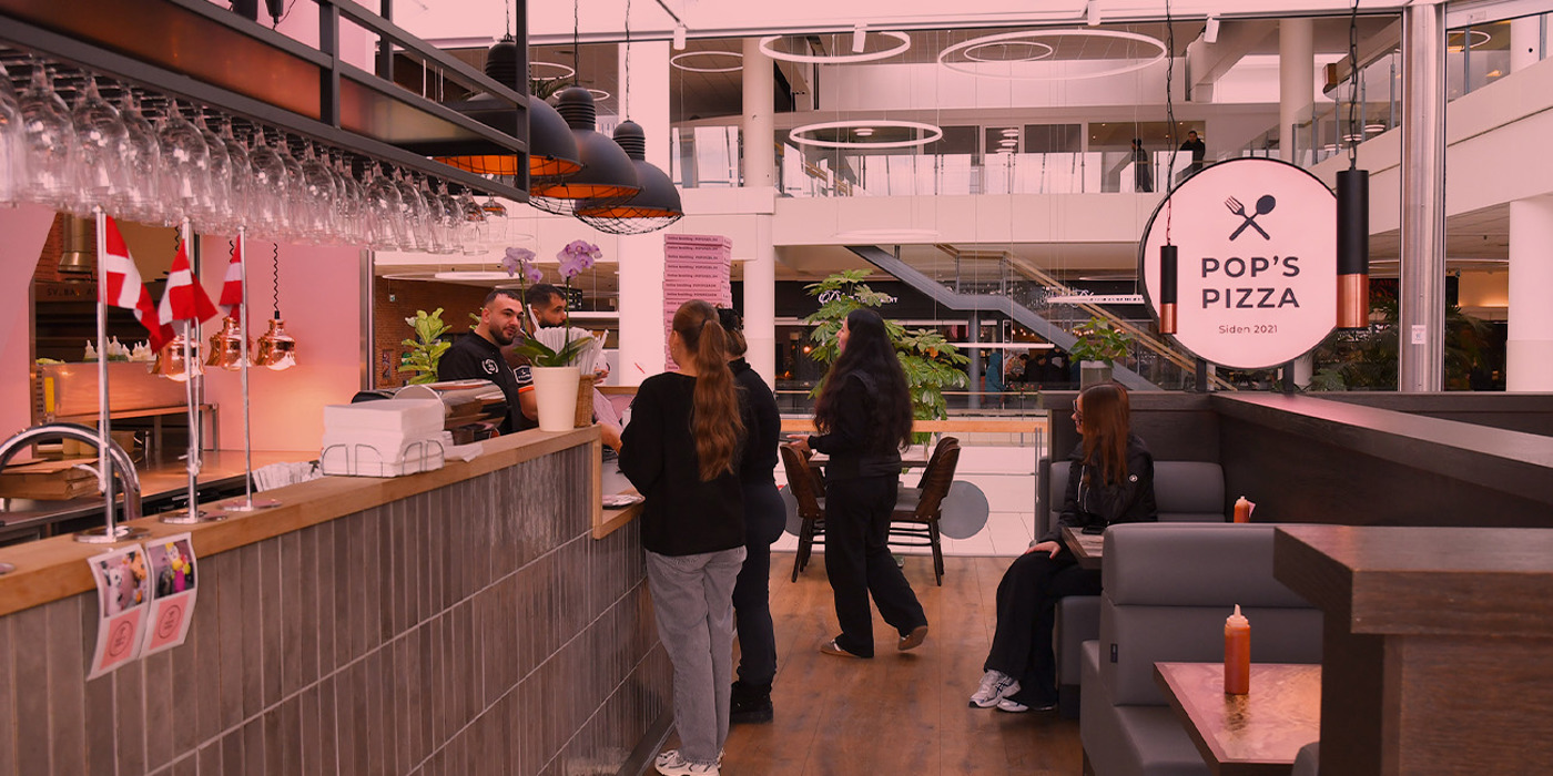 Når man taler om et pizzaria, der skal ligge på et centers bedste placering – med 100 siddepladser og med udeservering og stort take away sted – så starter det med en tegning. I tilfældet med Pops Pizza betød centerets brandregler, at de første 5 tegninger måtte skrottes, da køkkenet skulle ligge et helt andet sted.