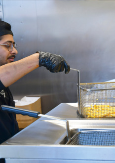 - En burgerstation til burgere og pommes frites.