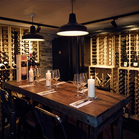 Lokalerne på Ravnsborggade tilhørte tidligere Joe & The Juice-drengene, og før de kom til, lå her en Amagerbank. De gamle bankbokse lå der faktisk stadig, da vi overtog og er nu omdannet til en fantastisk vinkælder med kvalitetsvine fra blandt andet Italien, Frankrig og Spanien. Her holder vi oplevelsesarrangementer, hvor kokken sammensætter en menu med 5-7 retter, mens vores sommelier står for vinen.