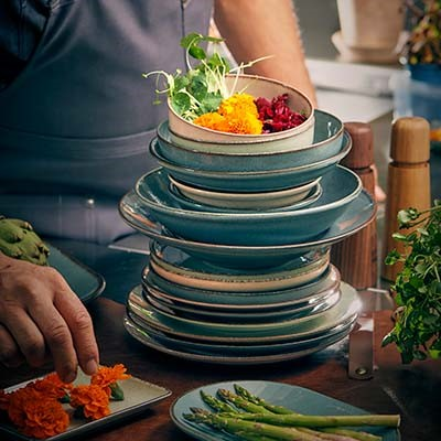 Disse smukke farver fremhæver dine anretninger, så dine gæster bliver inddraget og tiltrukket øjeblikkeligt. Prisen er god og dette gør denne kollektion attraktiv for både restauranter som også skal tænke på de omkostninger og til madentusiaster hjemme i privat, som bare vil lave skønne bordopdækninger.