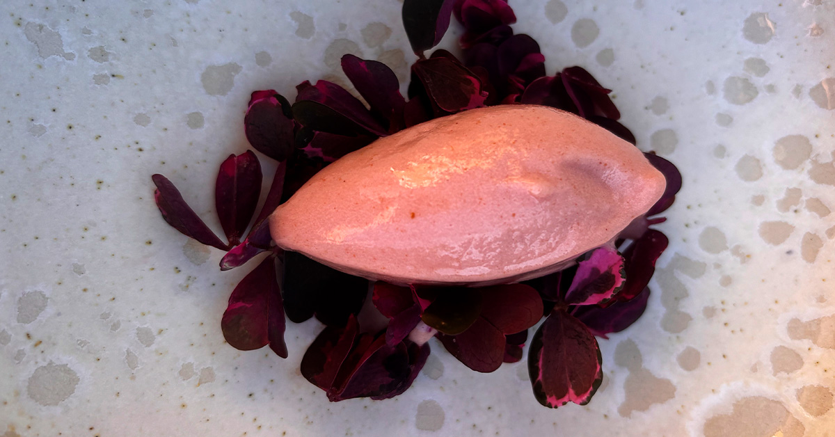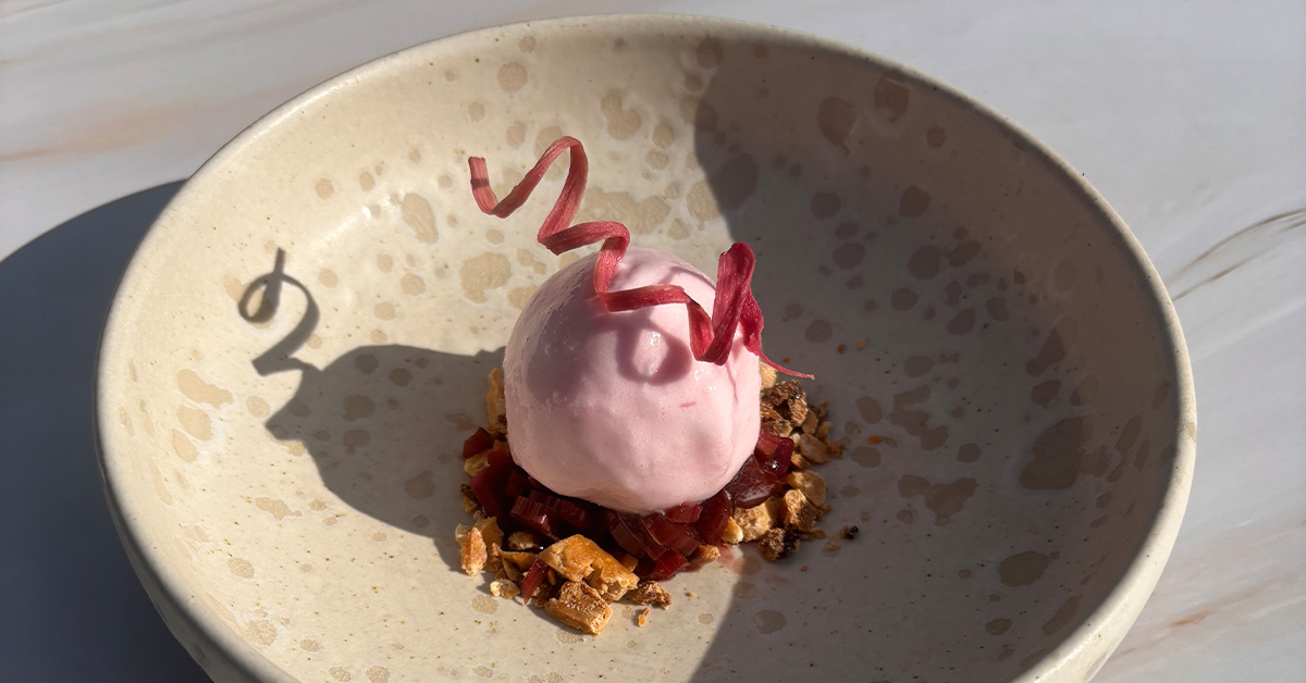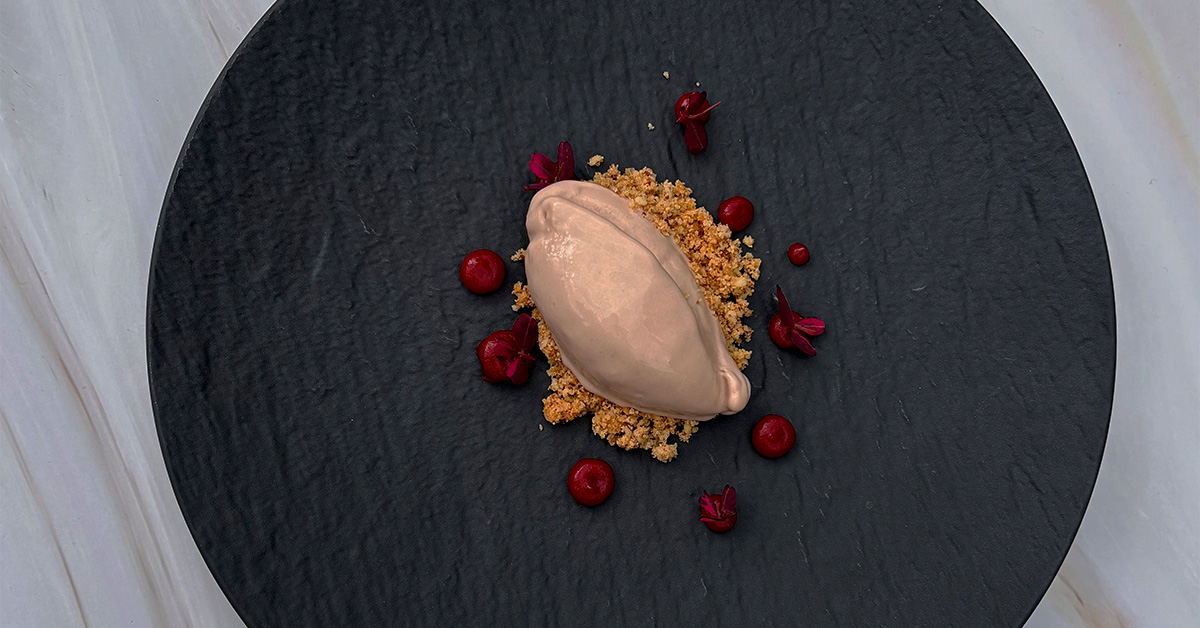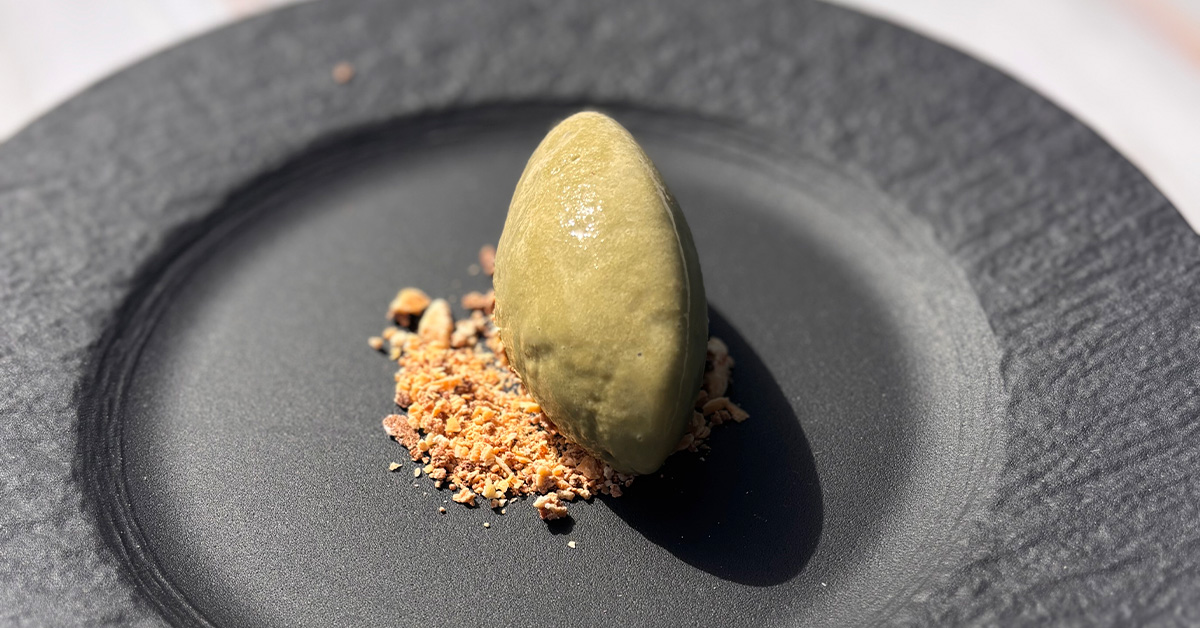 Elegant dessert med æble, olivenolieis & ribsgelé