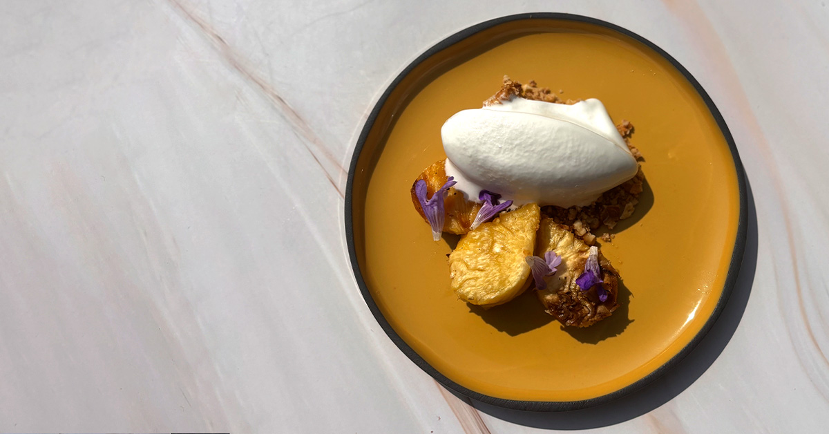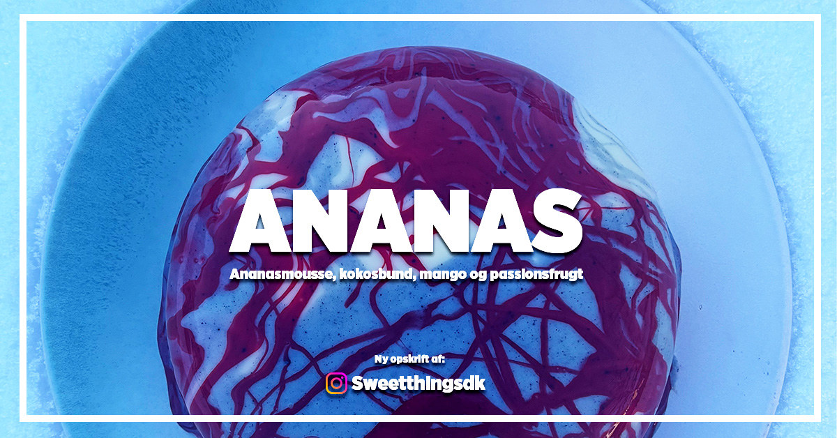 Ananaskage m. Ananasmousse, kokosbund, mango og passionsfrugt