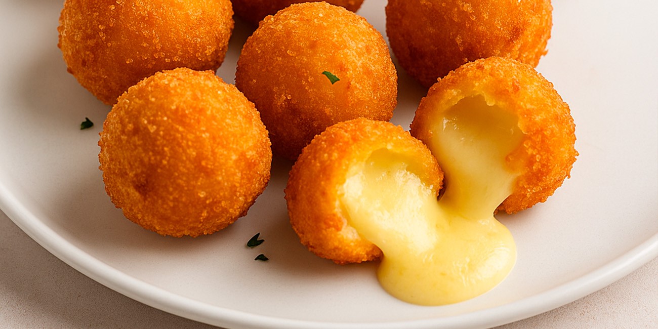 Forestil dig små, gyldne kugler med cremet, smeltet ost i midten… lavet helt fra bunden! Perfekte til filmhygge, tapas eller som et hurtigt “jeg-fortjener-det”-snack. Bonus: Du har sikkert allerede det meste i køkkenskabet.