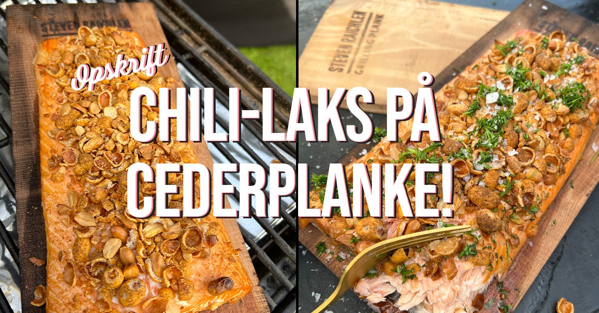 Lad grillen gøre arbejdet med denne saftige chili-laks, tilberedt på en duftende cedertræsplanke. Den sprøde topping af chilinødder giver både knas og varme, mens røg og urter fuldender smagen. En enkel, men imponerende ret til sommeraftener med venner og god vin.