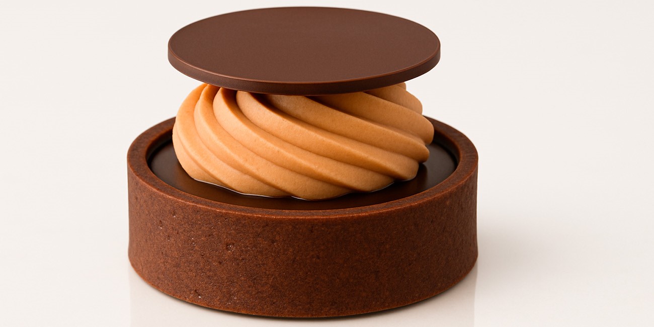 Temperér chokoladen: Smelt mørk chokolade til 45–50°C, køl den ned til ca. 27–28°C, og varm let op til 31–32°C (for mørk chokolade). Det sikrer blank overflade og sprød knæk. Lav en rund skive: Spred tempereret chokolade i et tyndt lag på plastfolie eller acetatark, drys let med kakaopulver, og udstik cirkler med en rund form, mens chokoladen stadig er let blød. Undgå luftbobler: Bank pladen let mod bordet efter at du har smurt chokoladen ud, så boblerne slipper fri. Finish: Når skiven er sat, kan den forsigtigt løsnes fra folien og lægges oven på cremen – det giver et elegant og professionelt look.