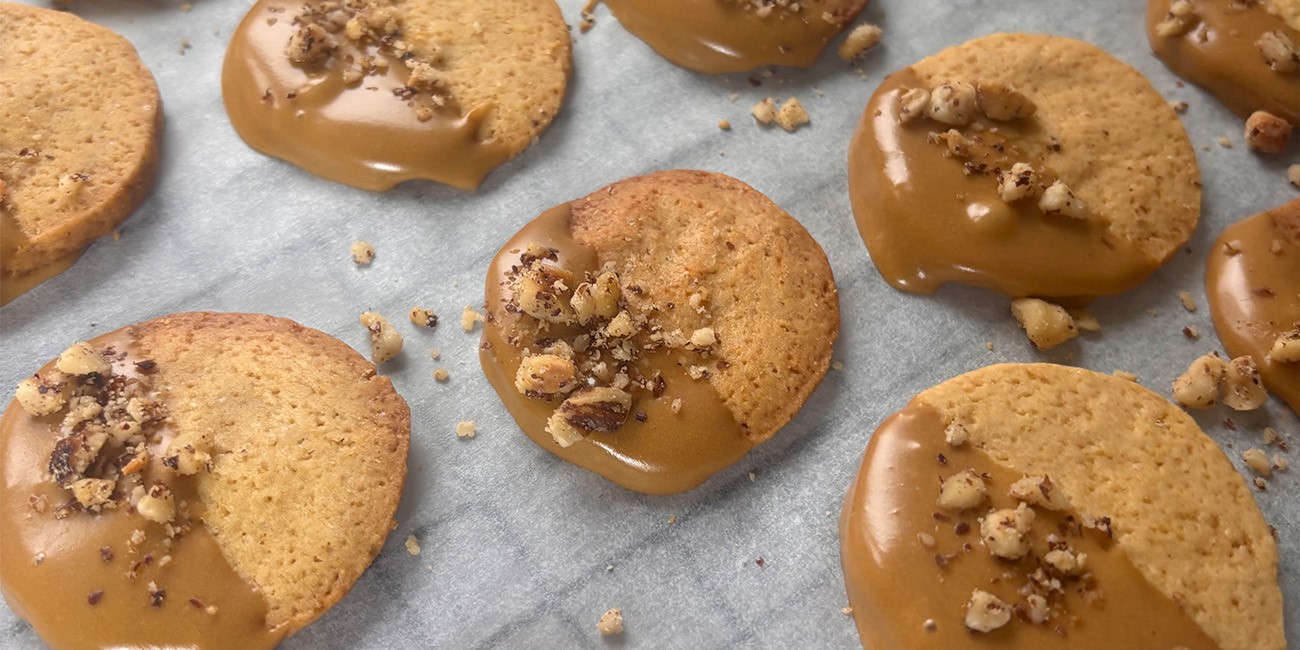 Sprøde kaffesmåkager med dyb kaffesmag, cremet glasur og sprøde hasselnødder. Perfekte til eftermiddagskaffen, som lille værtindegave eller når du vil forkæle nogen med noget enkelt og sofistikeret.