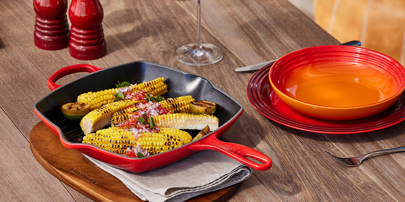- Før servering kan du opvarme en Le Creuset Kvadratisk Grillpande. Når panden er varm, skal du placere majsene på grillen og børste dem med din honning og lime smør. Grill majsene indtil de har fået grillmarkeringer. Servér dem varme med pico de gallo og creme fraiche.