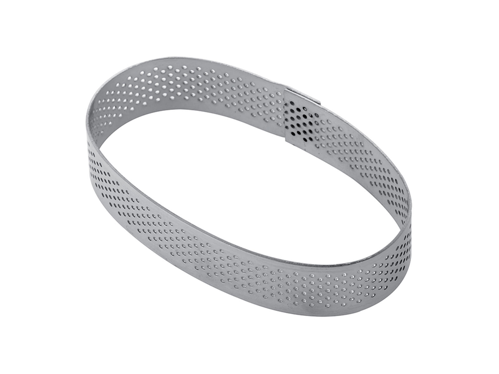 Bageringen måler 96 mm i længden, 57 mm i bredden og har en højde på 20 mm, hvilket giver den perfekte størrelse til individuelle portioner. Den er fremstillet af fødevaregodkendt rustfrit stål, som er både hygiejnisk og holdbart. Den ovale form kombineret med det perforerede design giver ikke kun funktionelle fordele, men også et visuelt tiltalende slutresultat på dine bagværker.