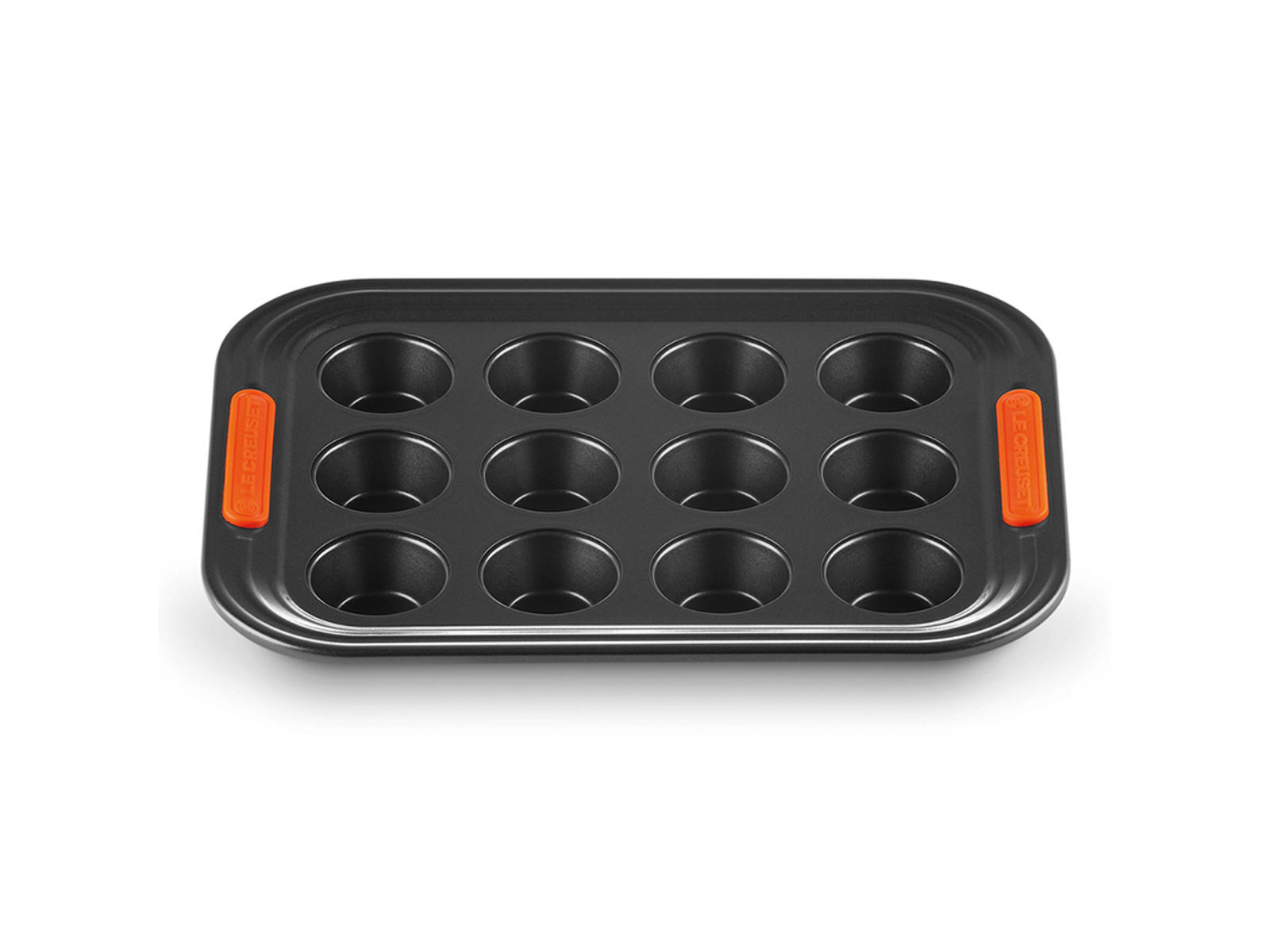 Le Creusets muffinform i kulstofstål giver dig mulighed for at bage 12 ensartede mini-muffins, cupcakes eller små tærter på én gang. Med sine varmebestandige silikonehåndtag og dobbelt non-stick-belægning sikrer denne 30x22 cm form, at dine små bagværker både bliver jævnt bagte og lette at få ud af formen.