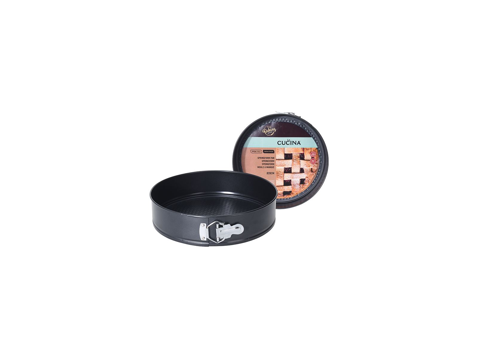 Denne 28 cm springform med non-stick belægning gør bagningen lettere og resultatet bedre. Med en højde på 7 cm og en vægt på kun 426 gram kombinerer formen solid konstruktion med praktisk funktionalitet. Ideel til cheesecakes, mousselagkager og andre bagværker, hvor en intakt bund og nemme udtagning er afgørende.
