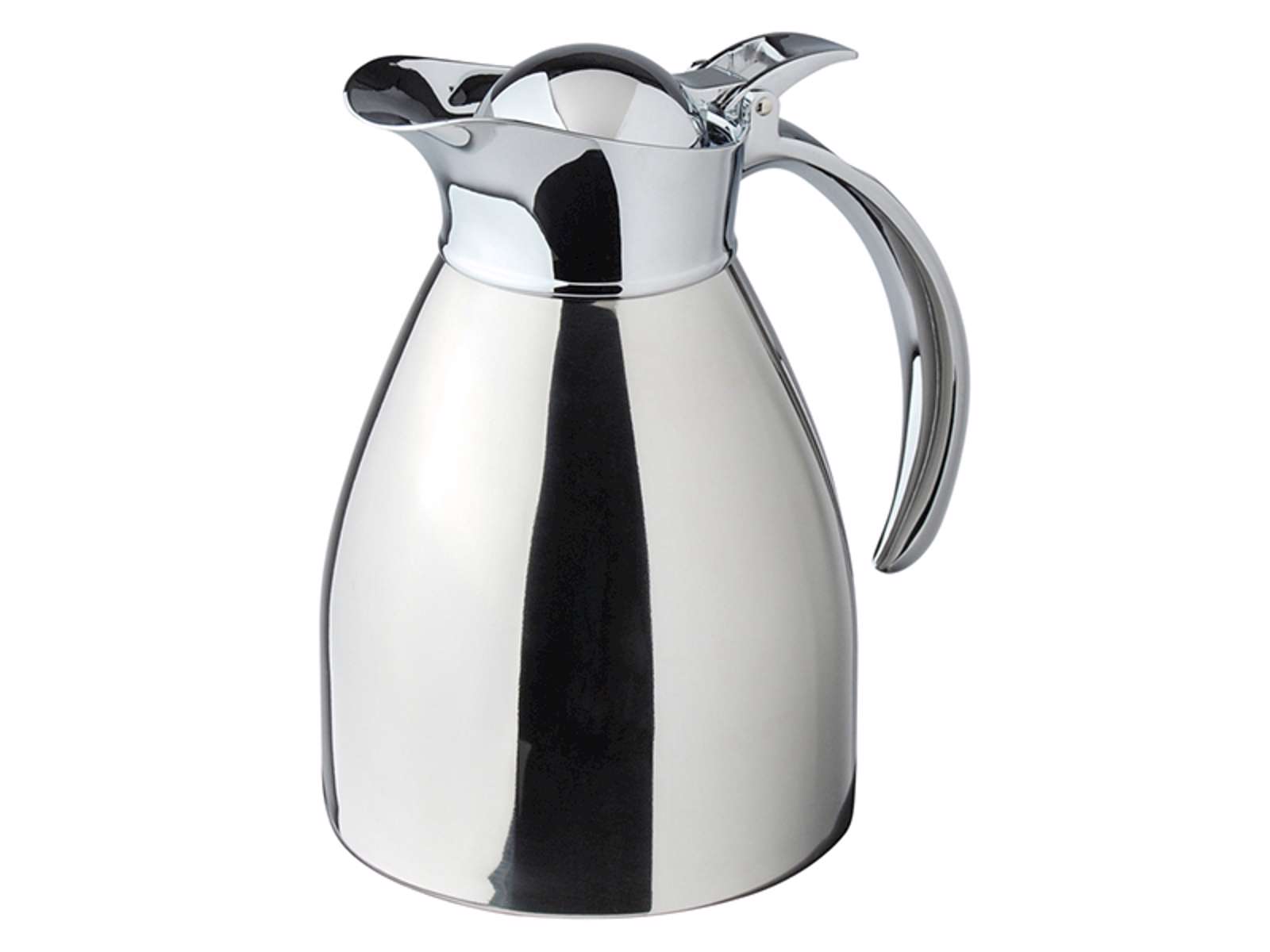 Det gennemtænkte klaplåg gør det muligt at hælde med kun én hånd, hvilket gør serveringen enkel og bekvem. Du slipper for besværlige skruelåg eller komplicerede mekanismer. Kombinationen af den blanke overflade og de solide metaldetaljer giver ikke kun kanden et elegant udtryk, men bidrager også til dens holdbarhed og brugervenlige design.