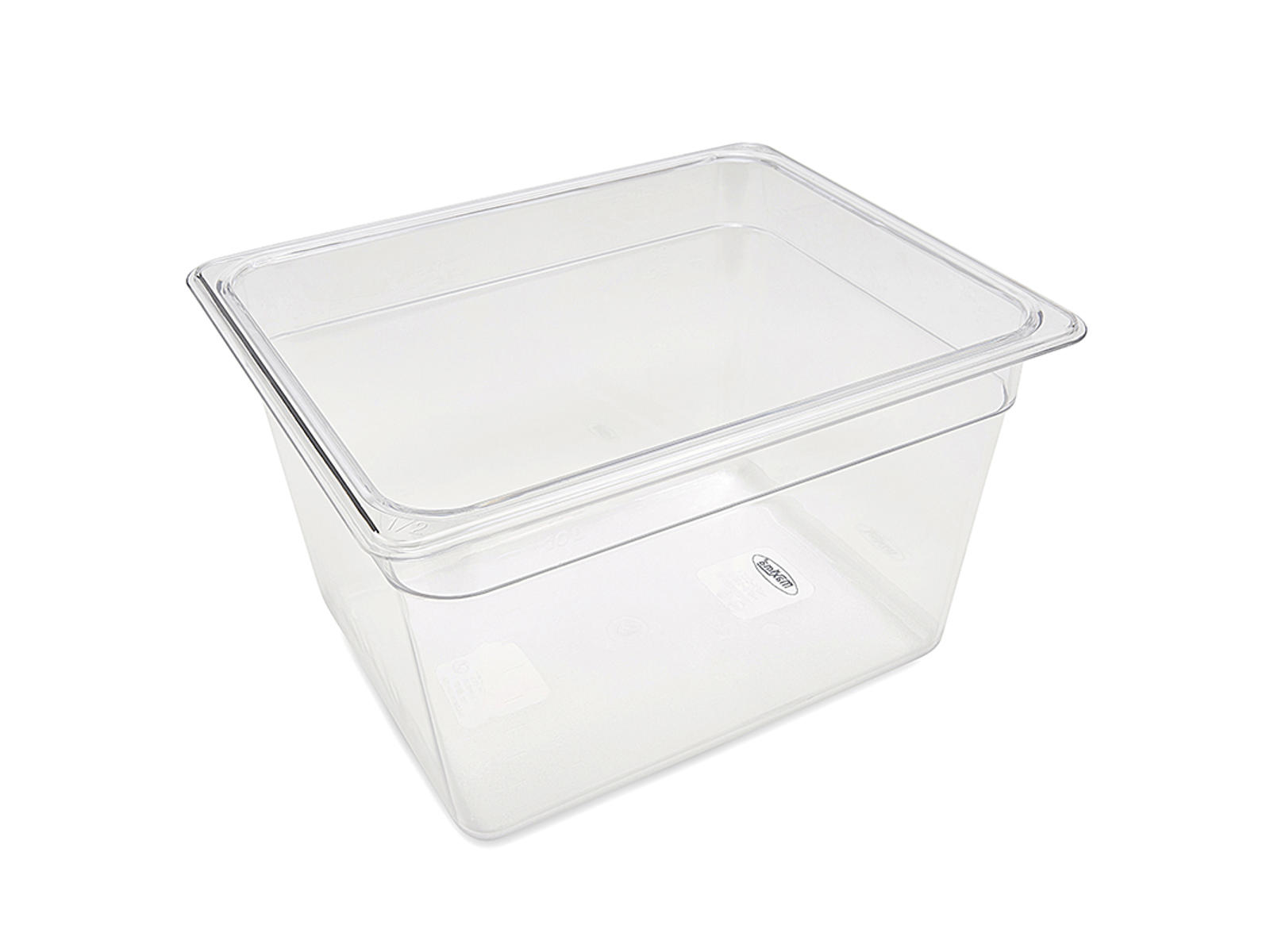 Kantinen er fremstillet af fødevaregodkendt polycarbonat, der er lugt- og smagsfrit. Materialet har en glat overflade, der er let at rengøre og modstandsdygtig over for pletter og misfarvning. Dette sikrer høj hygiejnestandard og lang levetid, selv ved intensiv daglig brug i professionelle køkkener.