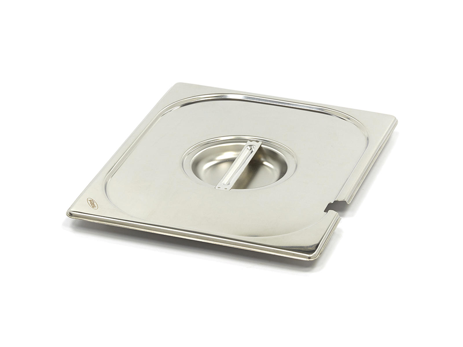 Dette 1/2 GN-låg måler 325 x 265 mm med en højde på 30 mm. Det vejer 350 gram og er fremstillet af fødevaregodkendt rustfrit stål. Den stabelbare konstruktion gør det nemt at opbevare flere låg sammen, hvilket optimerer pladsen i køkkenet. Låget har en særlig udskæring, der er designet til at give plads til serveringsskeer, så maden kan serveres mens låget forbliver på plads.