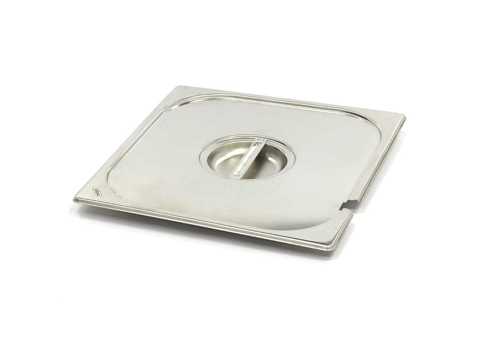 De foldede kanter og afrundede hjørner på dette kantinelåg øger både sikkerheden og holdbarheden i hverdagens travle arbejdsgange. Udskæringen til serveringsskeer giver mulighed for at portionere mad uden at fjerne hele låget, hvilket både er hygiejnisk og praktisk under servering. Den stabelbare konstruktion sparer værdifuld plads i køkkenet, hvad enten låget skal opbevares i køleskabe, frysere eller på hylder.