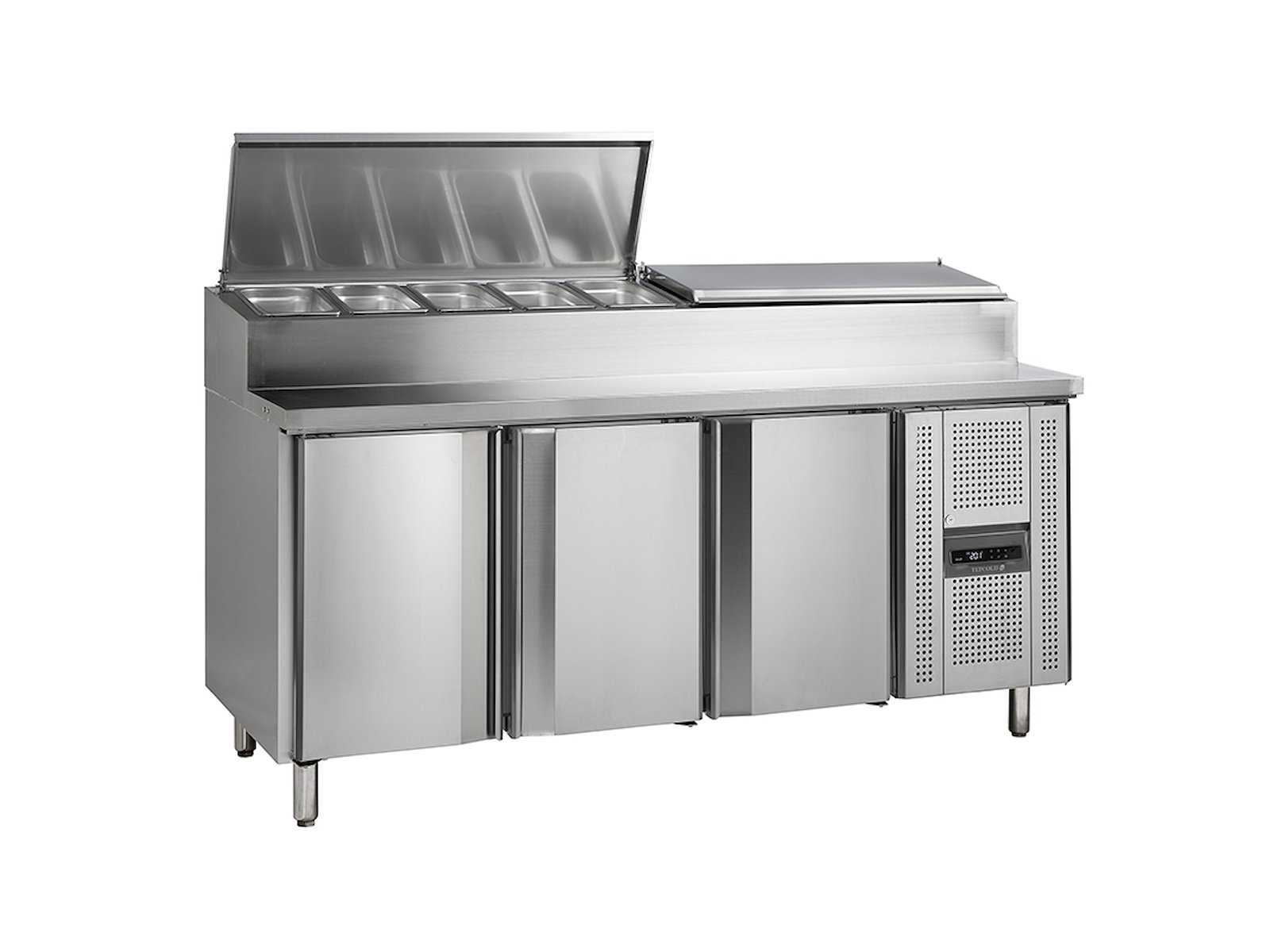 - Kombinerer kølebord med 3 GN1/1 hylder og opsats til 9xGN1/3 kantiner