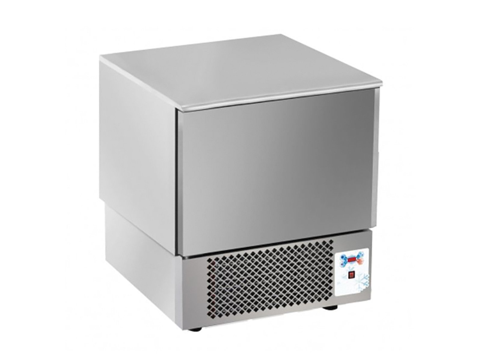 Med plads til 5 bakker med 70 mm afstand mellem hver giver Eco-Frost5 dig frihed til at håndtere forskellige typer fødevarer samtidig. Uanset om du arbejder med bagværk, varme retter eller kolde anretninger, tilpasser maskinen sig dine behov. Den solide konstruktion i rustfrit stål sikrer nem rengøring og lang holdbarhed, selv i krævende køkkenmiljøer. Maskinen anvender miljøvenlige kølemidler (R404A/R507), som leverer pålidelig køleeffekt med minimal miljøpåvirkning.