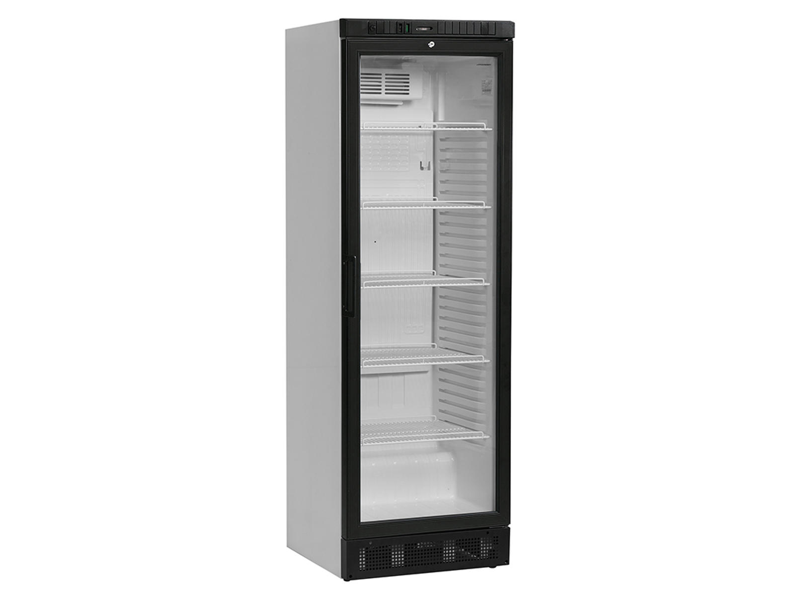 Tefcold SCU1375 er et professionelt displaykøleskab med 347 liters kapacitet og hængslet glasdør med aluminiumsramme. Med temperaturinterval fra +2 til +10°C og ventilatorkøling sikres ensartet køling, mens de fem justerbare hylder giver fleksibel opbevaring af dine produkter.