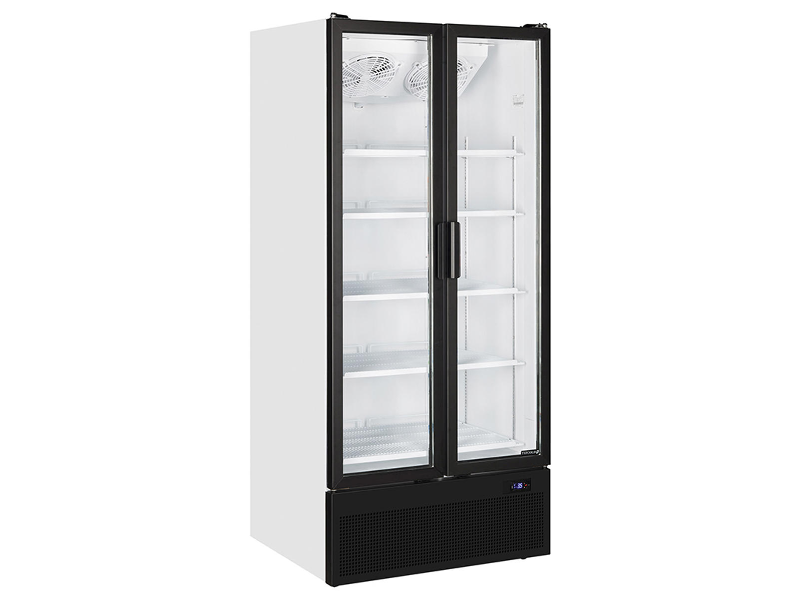 Tefcold displaykøleskab med dobbelte glasdøre og optimal produktvisning