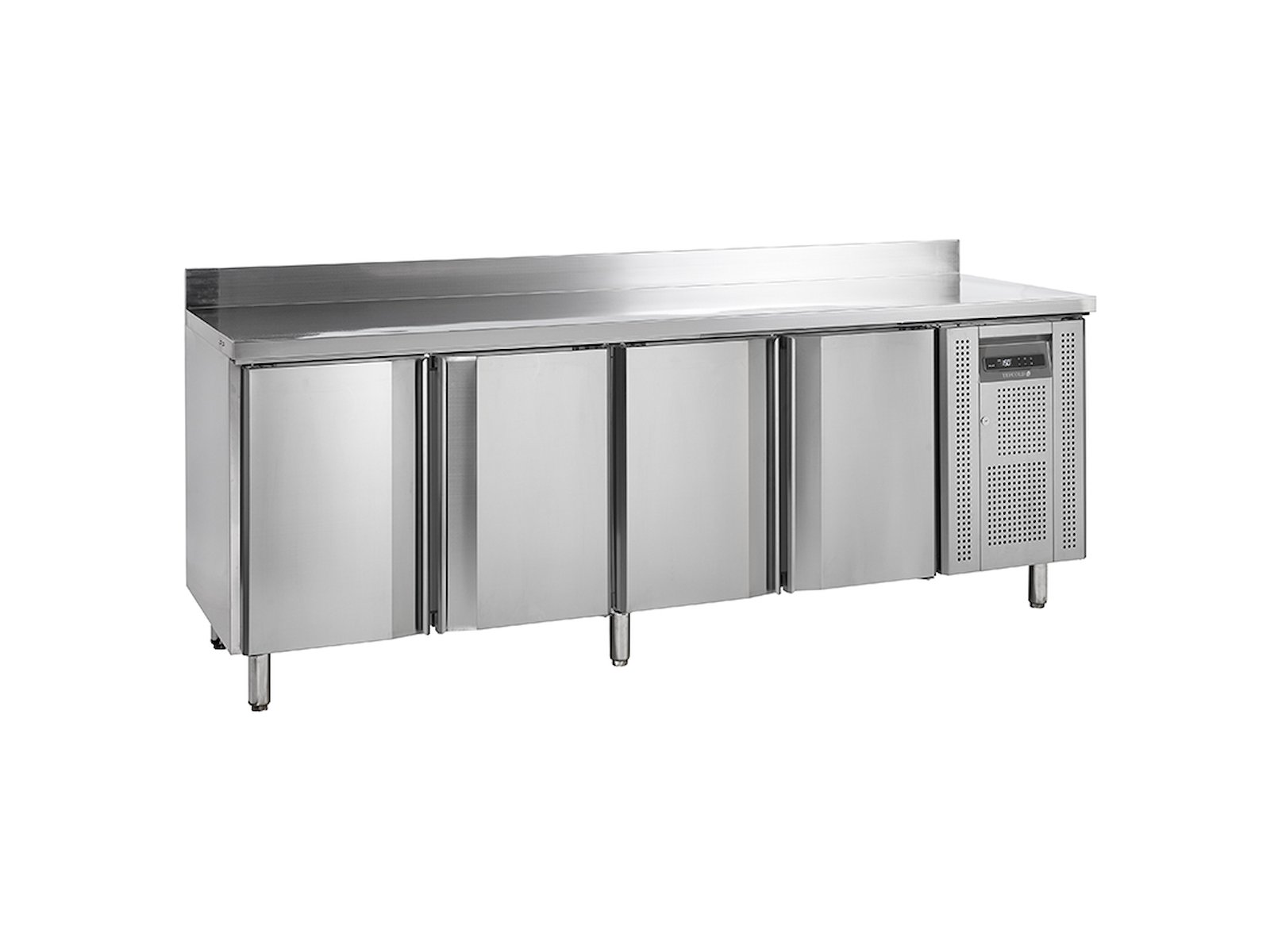 Med ventileret køling fordeles temperaturen jævnt i hele skabet, hvilket beskytter dine råvarer mod temperaturudsving. Automatisk afrimning reducerer vedligeholdelsesbehovet og sikrer konstant driftstemperatur. De fire hvide trådhylder (328 x 430 mm) kan justeres efter behov og giver god luftcirkulation omkring produkterne. Bordpladen med bagkant forhindrer, at væsker eller madvarer falder ned bag frysedisken, hvilket både forbedrer hygiejnen og arbejdsflowet.