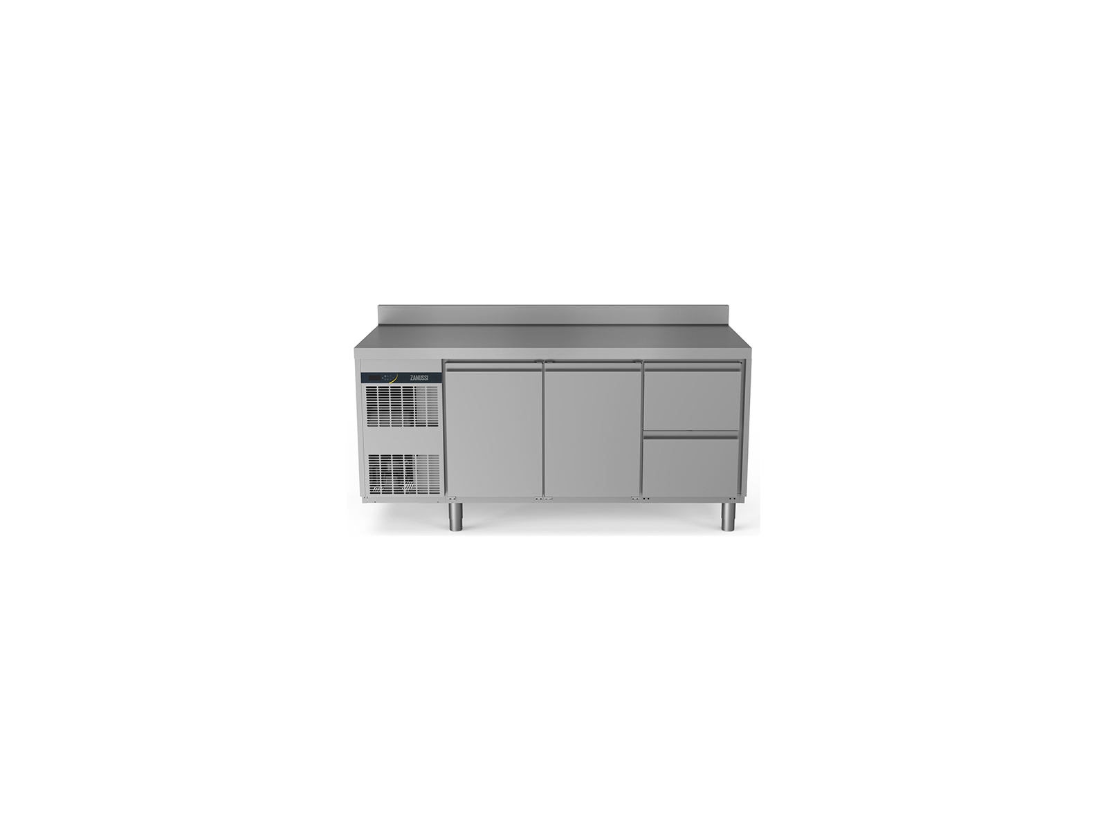 Denne 440 liter køledisk fra Zanussi er konstrueret i AISI 304 rustfrit stål både indvendigt og udvendigt. Med to låger og to halve skuffer giver den fleksibel opbevaring, mens de 90 mm isolering og den justerbare temperatur fra -2°C til +10°C sikrer optimal opbevaring af dine fødevarer.