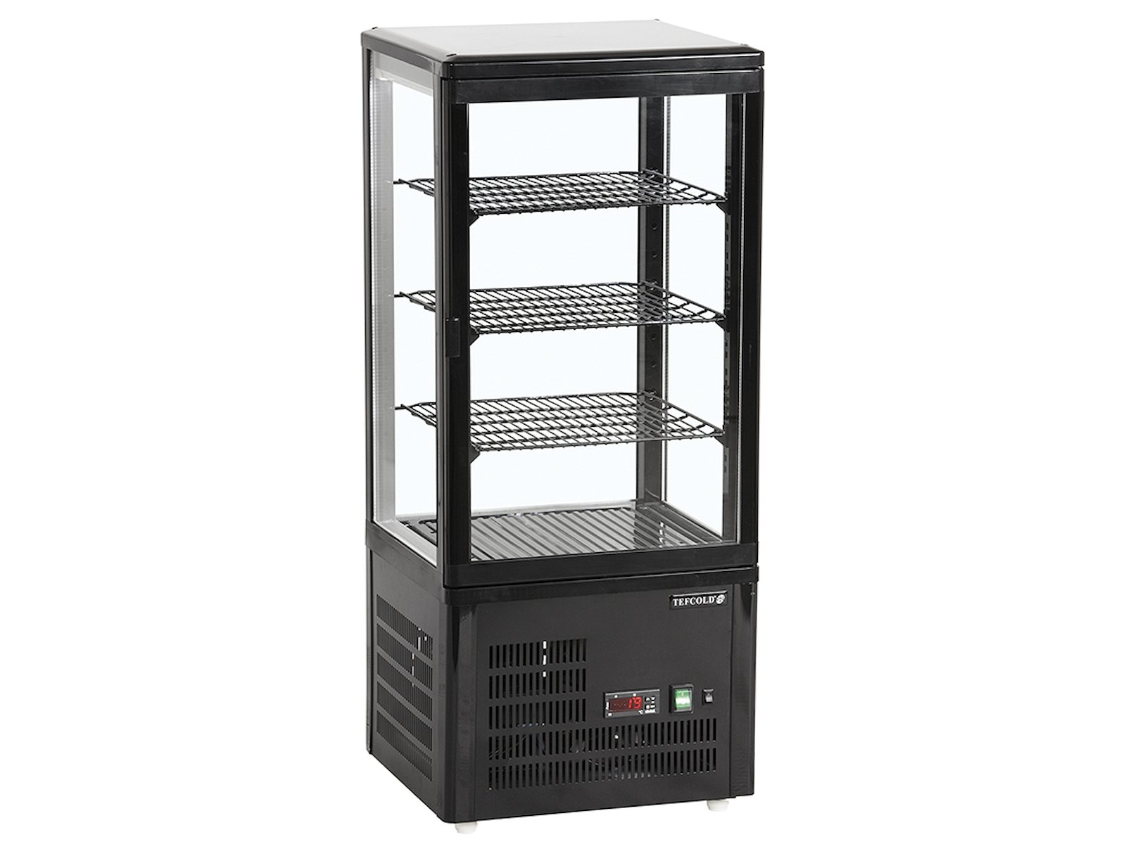 Tefcold UPD80-BLACK er en stilfuld kølemontre i bordmodel med dobbeltglas på alle fire sider. Den kombinerer effektiv køling med fremragende produktpræsentation takket være ventileret kølesystem, automatisk afrimning og indbygget LED-belysning. Med en kapacitet på 78 liter og et kompakt design er den både praktisk og pladsbesparende.