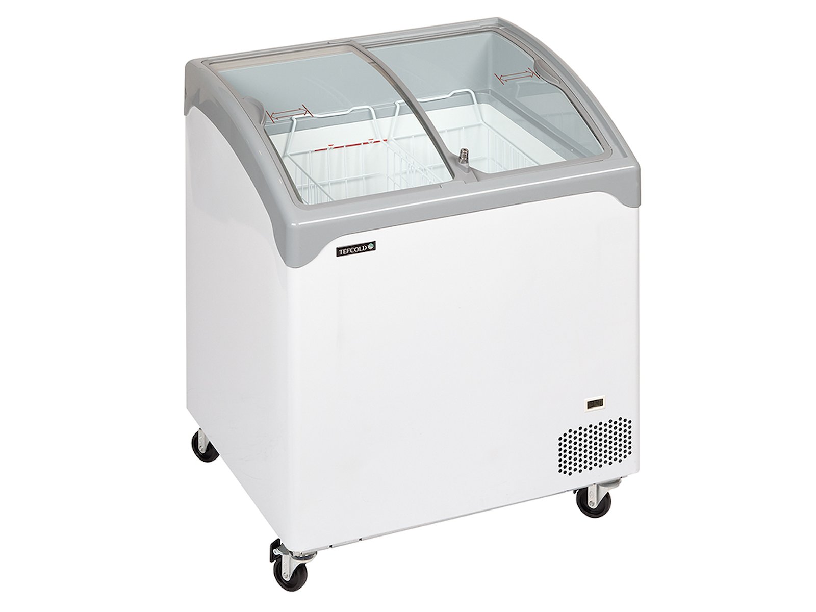 Tefcold NIC201SCEB kummefryser kombinerer effektiv nedfrysning med elegant præsentation gennem de buede glasskydelåg. Med 138 liters kapacitet, temperaturområde fra -24°C til -14°C og et lavt energiforbrug på kun 98W holder den dine produkter perfekt frosne og synlige for kunderne.
