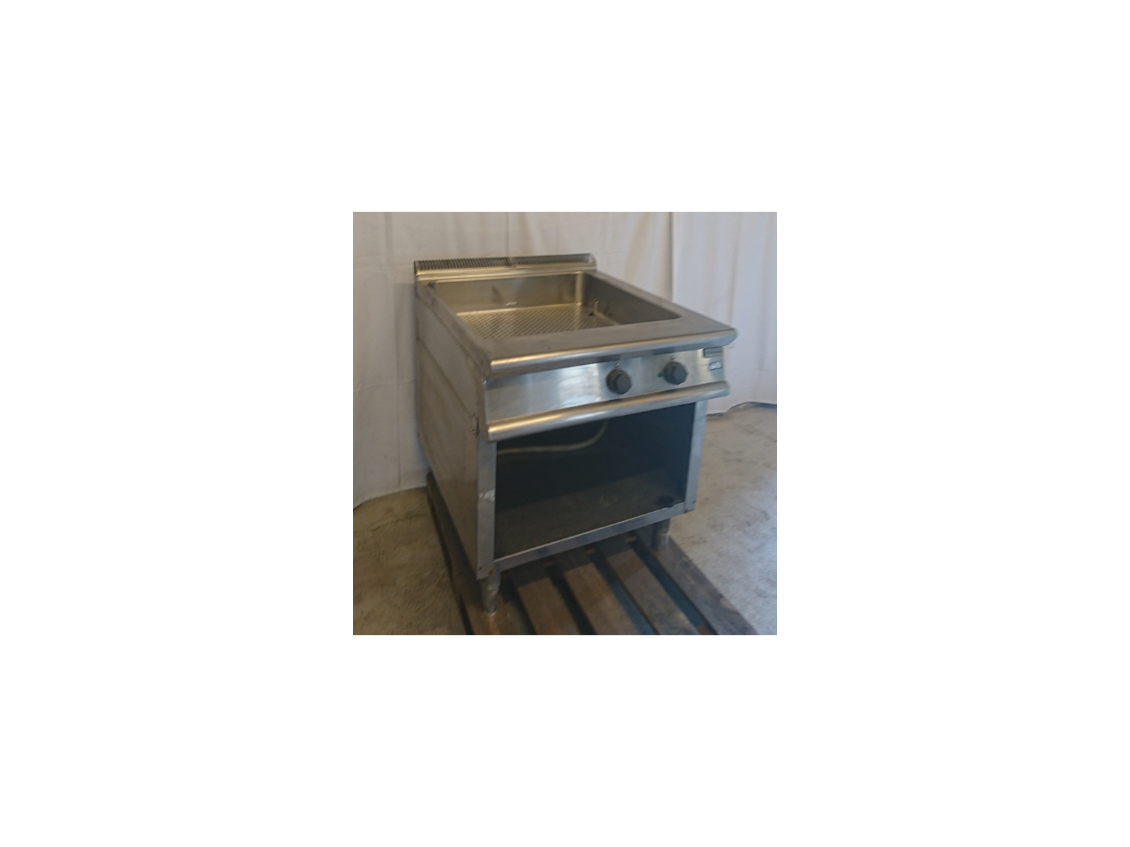 Dette brugte vandbad til indbygning er en praktisk løsning til varmholdning af mad i professionelle køkkener. Med dimensioner på 910x700x860 mm og en strømtilslutning på 16 ampere får du et funktionelt vandbad, der kan integreres direkte i din eksisterende køkkenopsætning. Bemærk at dette vandbad mangler afløb.