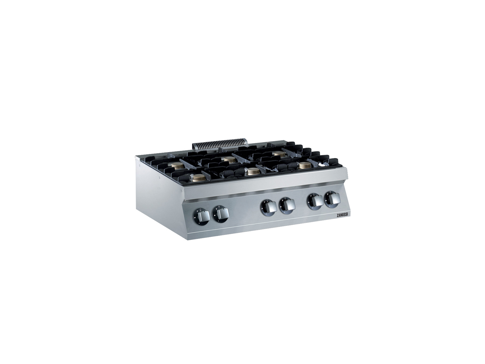 Dette kogebord i rustfrit stål fra Zanussi giver dig hele 6 kraftfulde gasblus med en samlet effekt på op til 33kW. Bordets helsvejsede topplade i rustfrit stål sikrer lang holdbarhed og nem rengøring, mens de højtydende blomsterflammebærndere tilpasser sig forskellige størrelser af gryder og pander.