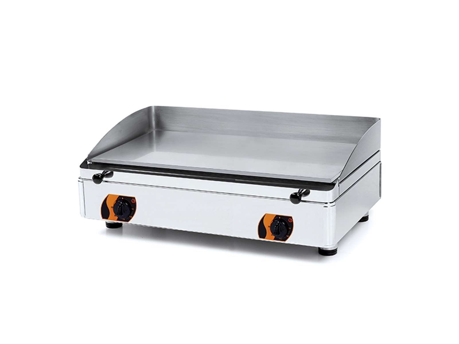 Stegepladen er fremstillet i holdbart rustfrit stål med en slidstærk krombelægning, der modstår daglig intensiv brug. Med en vægt på 61 kg og dimensioner på 808x530x305 mm passer den ind i professionelle køkkenopsætninger, hvor pålidelighed og ydeevne er afgørende. Den elektriske drift med 230V gør installation enkel, mens den solide konstruktion sikrer lang levetid selv i krævende køkkenmiljøer.
