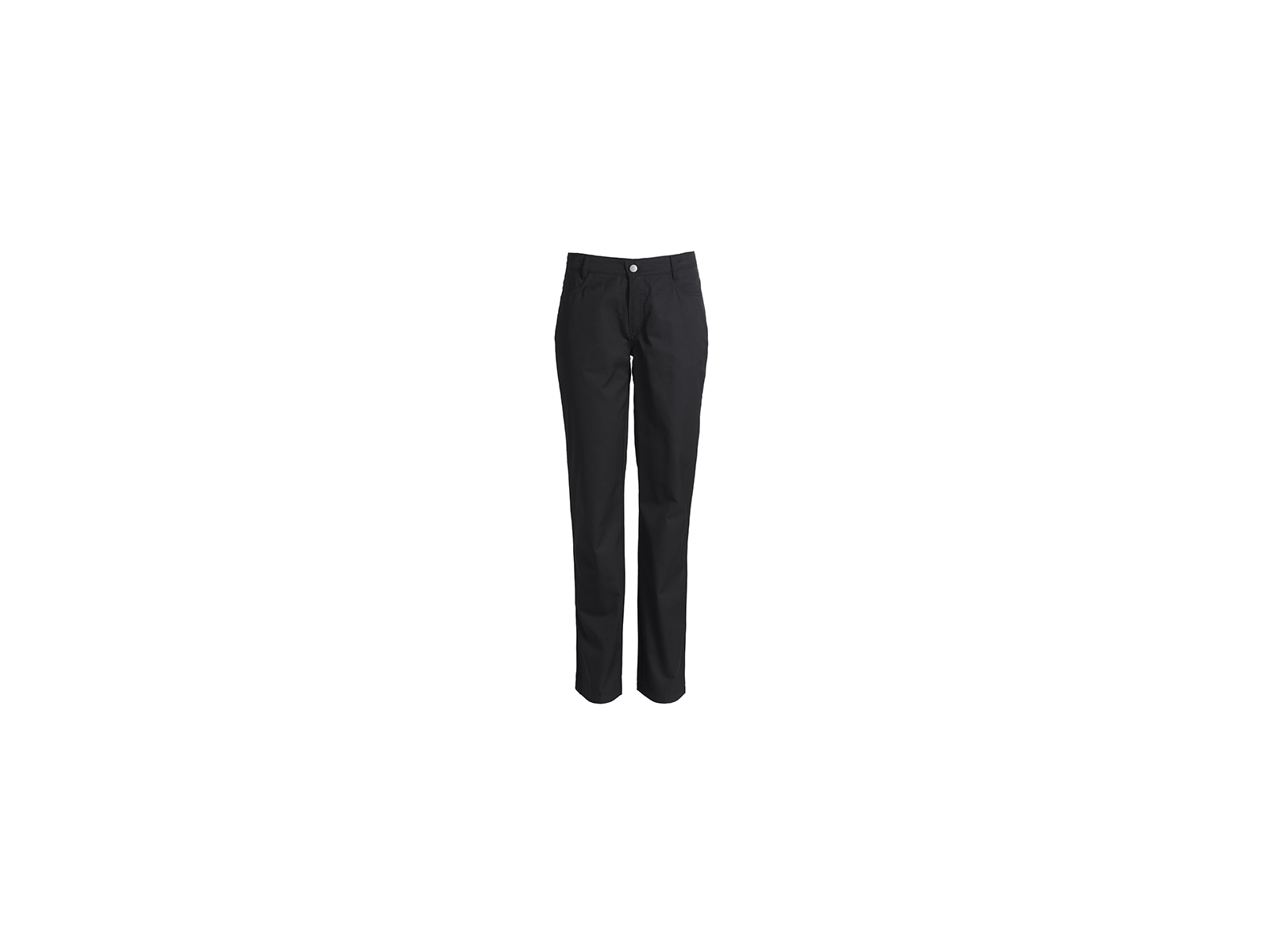 Den justerbare linning sikrer, at bukserne sidder behageligt hele arbejdsdagen, selv under skiftende aktivitetsniveauer. Den lave talje med bæltestropper giver et moderne udtryk, mens lynlåsen i gylpen gør dem nemme at tage af og på. Jeanslommerne foran samt to baglommer tilføjer praktisk opbevaringsplads til småting, du har brug for at have ved hånden. Med en skridtlængde på 82 cm er bukserne designet til at passe de fleste kvinder perfekt.