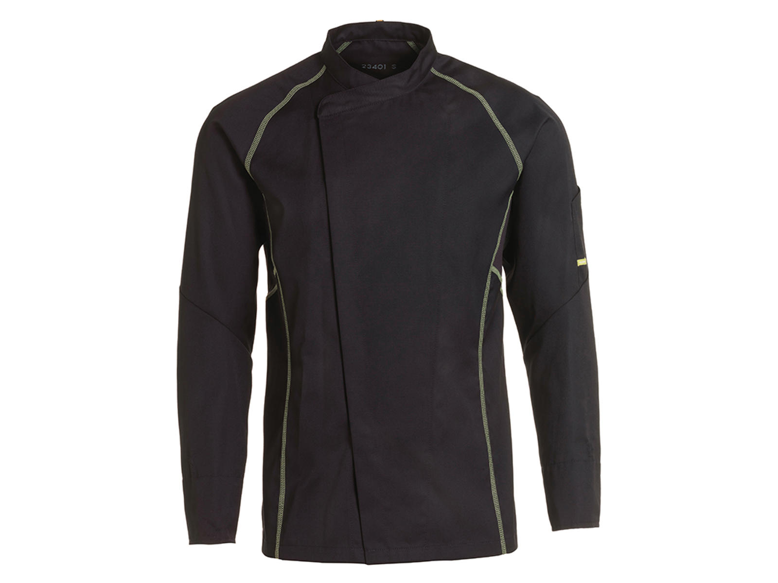 Kentaur kokkejakke sort m. lime flatlock unisex - flere størrelser