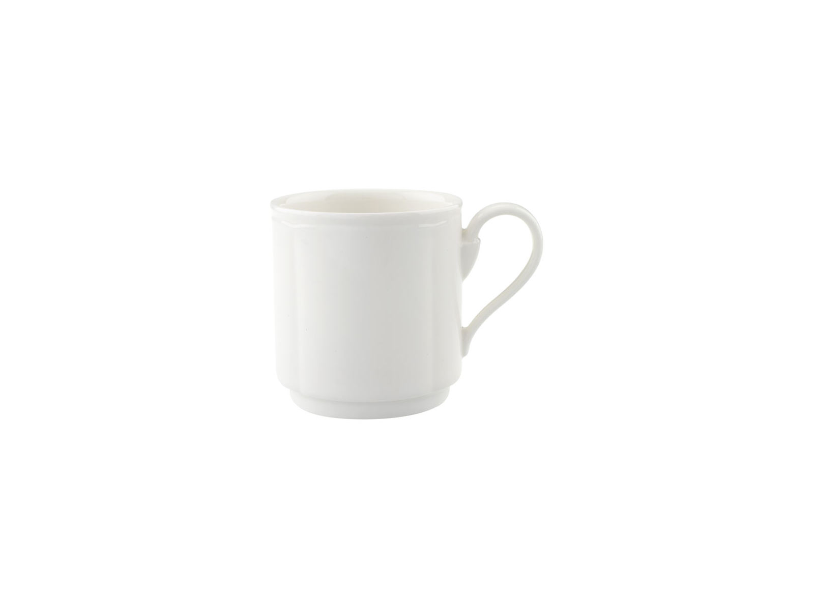 Dette stabelbare La Scala krus fra Villeroy & Boch kombinerer klassisk design med moderne funktionalitet. Med et rummeligt volumen på 0,27 liter og fremstillet i premium hvidt porcelæn tilbyder kruset både holdbarhed og et stilrent udtryk, der fremhæver dine varme drikke.