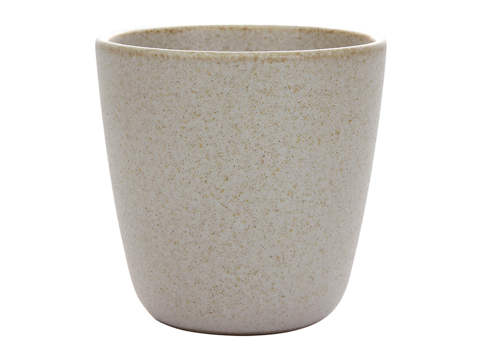 Dette håndlavede stentøjskrus fra Aida RAW-serien forener æstetik og funktionalitet i et tidløst design. Med sin sandybeige farve og reaktive glasur har hvert 30 cl krus et unikt udtryk, hvor små variationer i overfladen giver det karakter og personlighed. Den hankeløse udformning giver kruset et rent, minimalistisk udtryk, der passer perfekt ind i den nordiske indretningsstil.